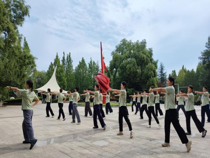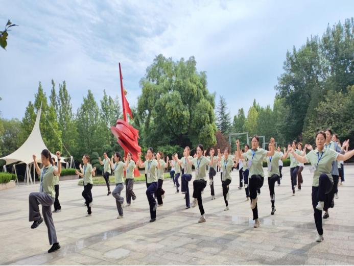 每日清晨,医学院教师们准时齐聚训练场,跟随“大家一起来”的音乐,认真完成伸展、弯腰、踢腿、跳跃等一系列科学设计的健美操动作。这不仅是体能的锻炼,更是一次“体医融合”理念在校园的生动实践。