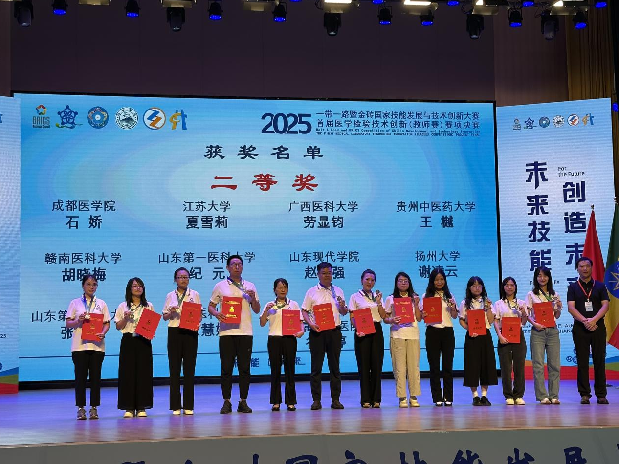 8月8日至10日,“一带一路”暨金砖国家技能发展与技术创新大赛第二届医学检验技术赛项(本科学生组)暨首届医学检验技术赛项决赛(教师组)在江西九江学院举行。经过专业基础理论考试、虚拟仿真实验操作、专业思维能力测试、教案设计、现场说课五个环节的激烈角逐,山东现代学院医学院副教授赵洪强荣获教师组二等奖。同时,我校荣获本科学生组“优秀组织奖”。