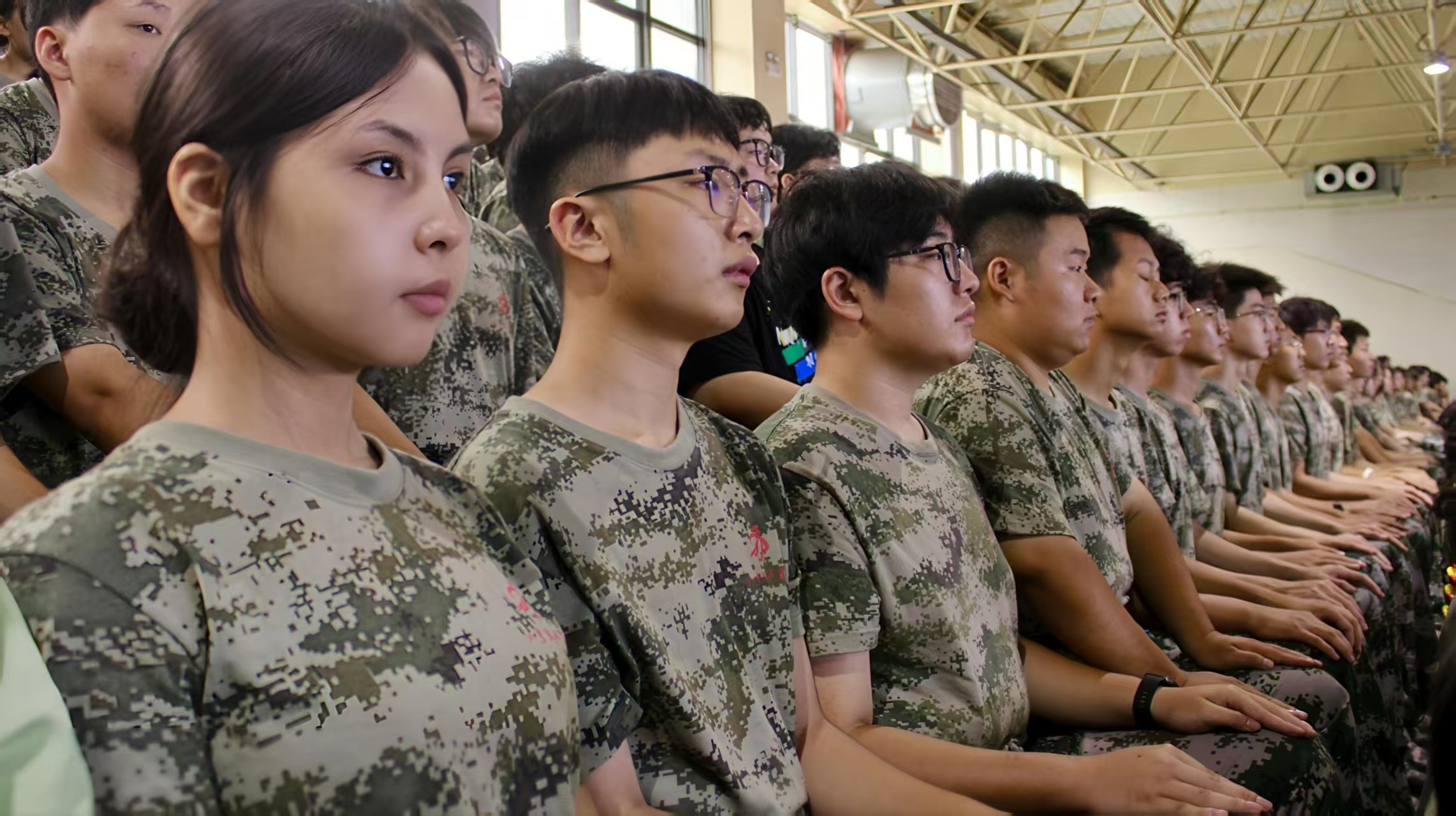 阅兵仪式上,受阅方阵步伐铿锵,新型装备驶过,战机掠空,现场惊叹声、掌声不断。师生们目光灼灼,满脸自豪与震撼。