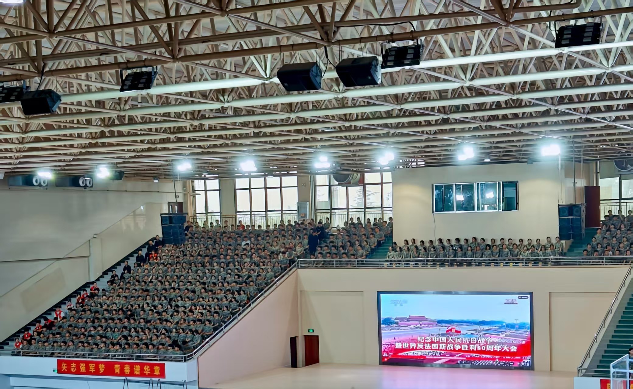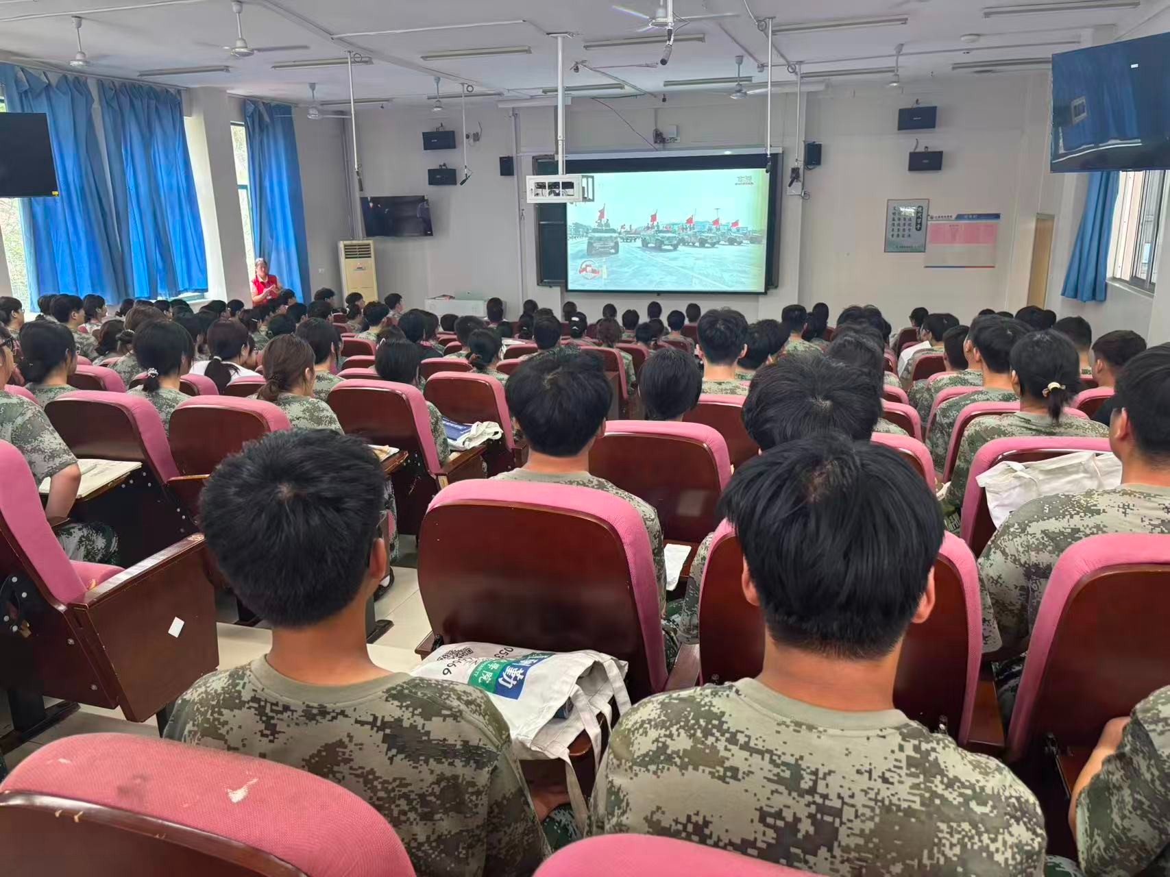 9月3日上午,山东现代学院医学院组织全体师生集中观看阅兵仪式直播。
