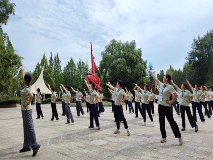 每日清晨,医学院教师们准时齐聚训练场,跟随“大家一起来”的音乐,认真完成伸展、弯腰、踢腿、跳跃等一系列科学设计的健美操动作。这不仅是体能的锻炼,更是一次“体医融合”理念在校园的生动实践。