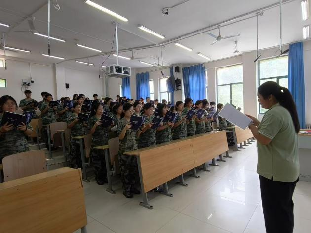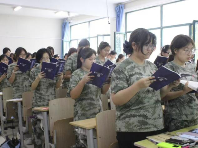 国学经典齐声诵读,涵养青春品格:新生身着整齐的军训服,以昂扬姿态齐声诵读《论语》《弟子规》等经典篇目,在抑扬顿挫的诵读声中感悟先贤智慧,亲身感受中华优秀传统文化魅力,进一步落实学院特色育人理念。
