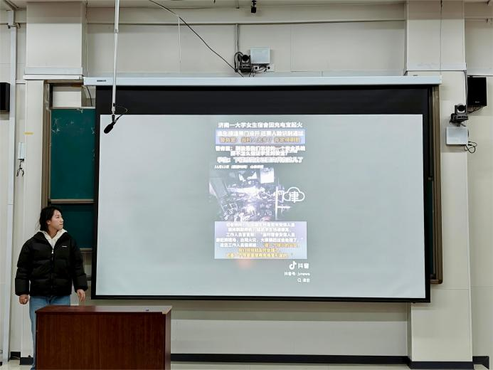 会议开始,付建新老师播放了一段某学校宿舍楼因充电宝充电时无人看管而引发火灾的事故视频。视频中,一间宿舍因火势猛烈而被严重烧毁,但所幸并未造成人员伤亡。这一幕触目惊心的场景立刻引起了同学们的警觉,再次凸显了宿舍用电安全以及“人走电断”的重要性。此外,付老师还强调,安全不仅限于生活用电,还包括事故安全、公寓生活安全、人员管控安全及公共安全等多个方面,这些都是各班导员在班会中反复强调的问题,并已有相应的防范措施,例如在每个宿舍安装烟雾报警器以防火灾。