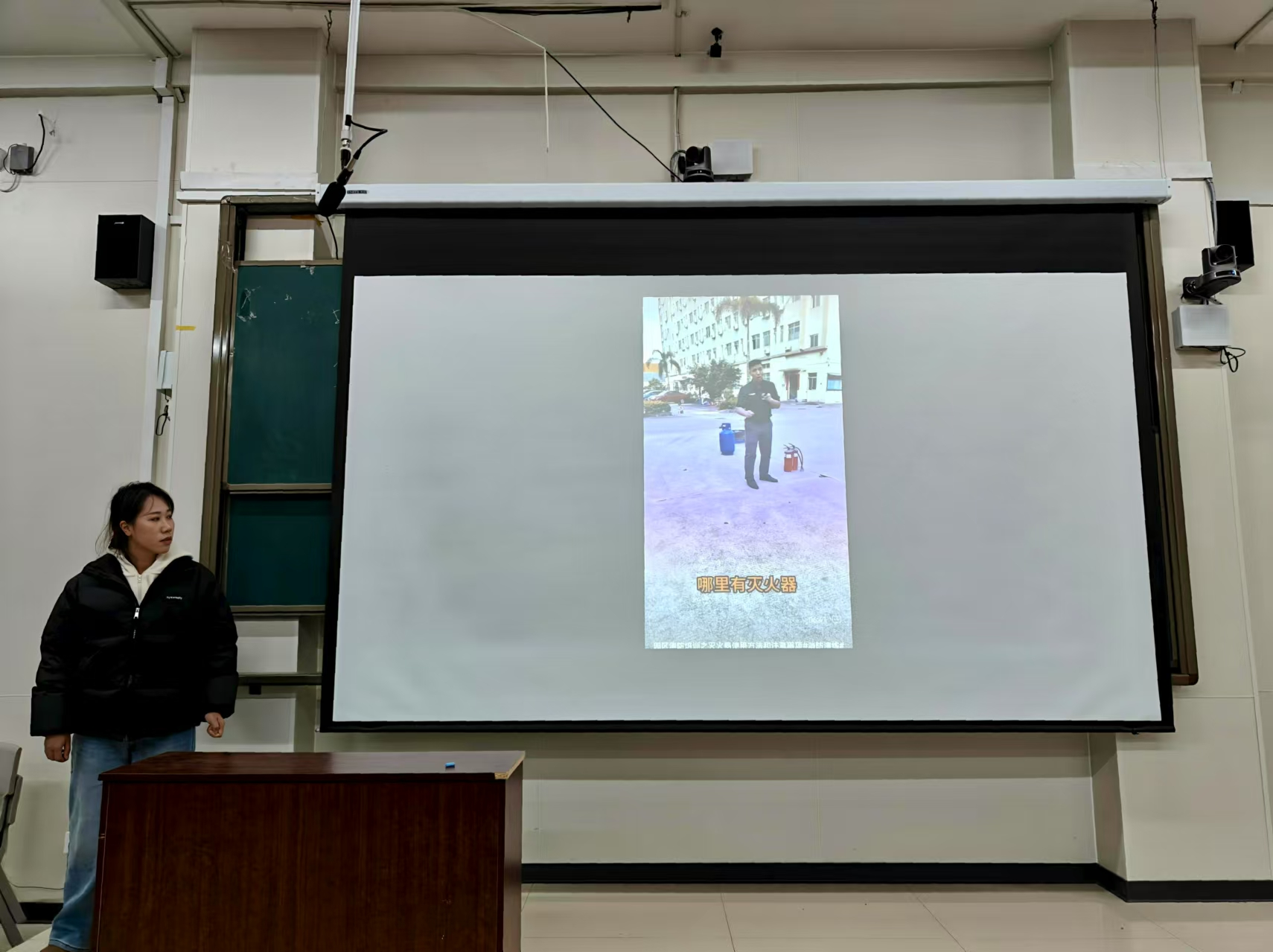 付老师指出,虽然知道问题并提前预防是必要的,但问题的发生往往是偶然的。因此,我们不仅要做好预防工作,还要在问题来临时能够迅速解决。公寓作为学生在校生活的重要场所,一旦发生火灾等重大问题,后果将不堪设想。为此,付老师又播放了关于灭火器使用方法的视频,虽然这只是应急措施的一部分,但需带领班内同学将安全管理规定内化于心、外化于行。