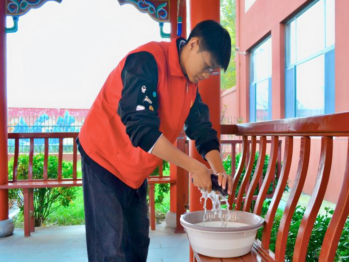 活动尾声,志愿者主动清扫庭院、擦拭桌椅,将公共区域整理得整洁温馨,用实际行动传递关爱。