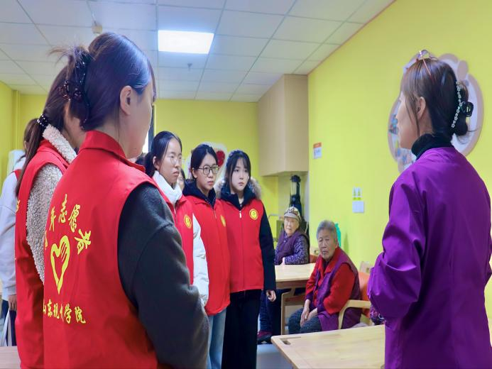 为弘扬敬老爱老传统美德,搭建代际沟通桥梁,让老年群体在青春陪伴与文化互动中感受温情与活力,11月16日,山东现代学院医学院组织志愿者走进济南市章丘区阳光佳苑敬老院,开展“情暖夕阳献爱心·手扶暮岁送温暖”主题社会实践活动。