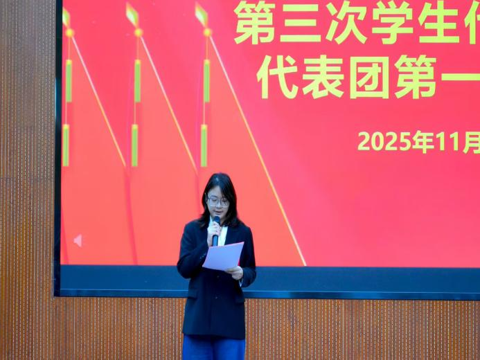 会议伊始,主持人宋佳向参会代表说明本次会议的核心任务:为即将召开的医学院第三次学生代表大会确定组织架构、审议关键文件,确保学代会规范、高效推进。