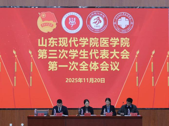 凝心聚力担使命,青春奋进新征程。11月20日,山东现代学院医学院第三次学生代表大会第一次全体会议开幕式在图书馆报告厅隆重举行。医学院常务副院长孟令秀、学管就业副院长徐志峰等领导出席盛会,各二级学院学生副书记、学生会主席代表与医学院全体学生代表齐聚一堂,共赴这场凝聚青春力量、共话发展蓝图的庄严盛会。