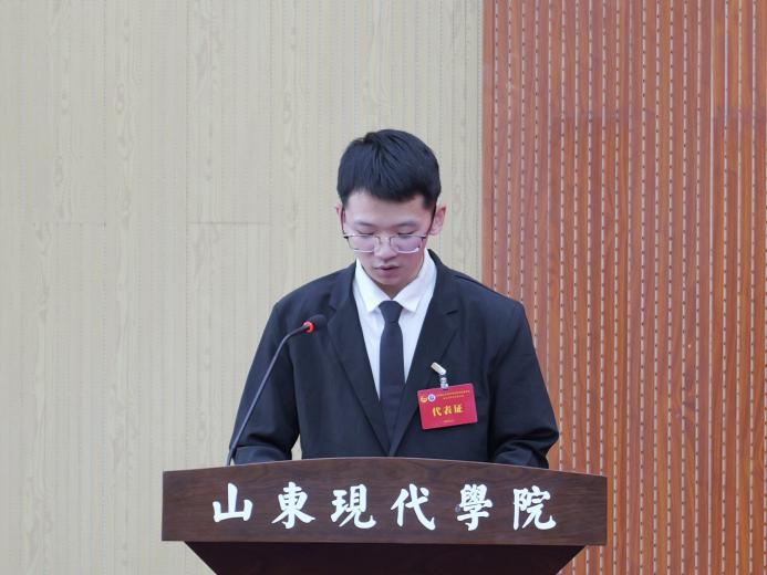 会上,袁克典同学作《山东现代学院医学院第十六届学生会工作报告》。报告全面回顾了学生会在思想引领、学风建设、校园文化活动、学生权益服务等方面的工作成效与实践探索,客观总结经验成果,同时立足学院发展与学子需求,清晰擘画了未来一段时期的工作方向与重点任务。报告引发全体代表的强烈共鸣,现场掌声阵阵。报告结束后,各代表团依次提交提案,围绕学院教学管理、生活服务、成长发展等关键领域积极建言献策,充分展现了青年学子的主人翁意识与责任担当。
