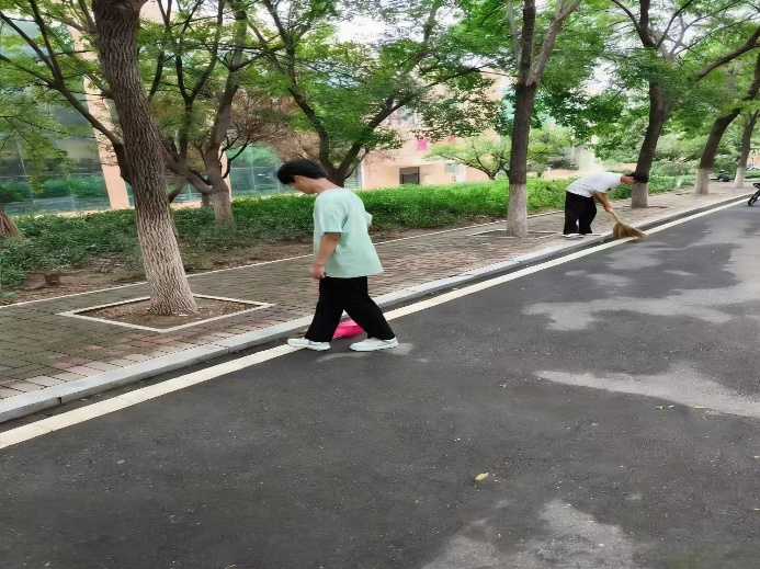 活动现场,同学们的劳动身影成为校园里一道亮眼的风景线。在垃圾分类站点处,色彩分明的分类箱体整齐排列,同学们仔细擦拭箱体表面、清理周边散落的杂物,让垃圾分类设施保持干净整洁的使用状态,晨光中的校园道路上,同学们手持扫帚俯身清扫,大家分工协作、干劲十足,用双手为校园道路焕新颜。从垃圾分类设施的维护到校园路面的清扫,同学们不放过任何细节,以实际行动践行劳动精神。