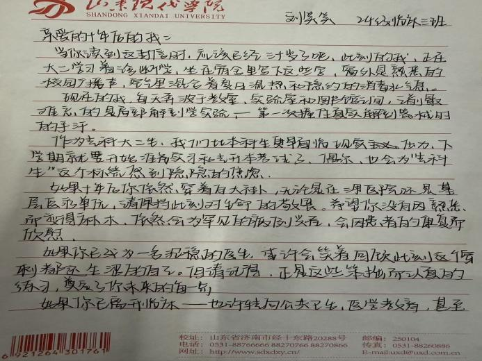 为引导青年学子坚定理想信念,铭记初心使命,2025年12月2日,山东现代学院医学院组织开展“致未来·叙初心”一封信征集活动,鼓励同学们以文字对话未来,用书信记录成长。