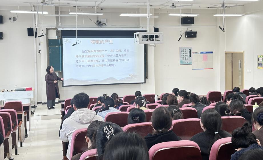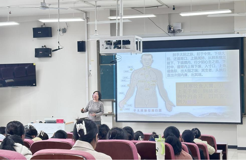 讲座伊始,姚笑教授从现代医学与中医经典两个维度,系统阐释了咳嗽的发生机制与定义。她结合《黄帝内经》中“五脏六腑皆令人咳,非独肺也”的经典论述,深刻指出咳嗽不仅是肺脏功能失调的表现,更与五脏六腑的功能密切相关,为后续推拿治疗筑牢了理论根基。姚教授借助专业示意图,拆解了咳嗽生理反射的全过程(深吸气、声门关闭、胸腹腔压力升高、声门突然开放、高压气流冲出),并同步结合中医“手太阴肺经”循行图,讲解了外邪侵袭肺系、脏腑功能失调致肺气不畅的病理机制,实现了中西医理论的有机融合,帮助在场听众快速厘清咳嗽的病本之源。